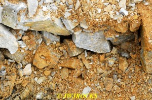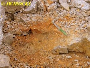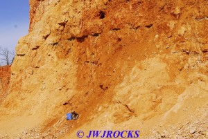 Boy after the winter we have had this year, with the extremely cold temps and snow/ice, one would probably think a trip to My Favorite Quarry was impossible to pull off, but no one was more surprised than me to see about five days of beautiful warm weather and sunny skies, pop up into the calendar three weeks into the snowiest month of the year. Missy and I loaded up early Saturday morning, the 22nd and headed out to see what we could find. My buddy had called me a few days before to let me know that very little work was going on at the quarry, but they were slowly and surely removing the blast pile. I figured everywhere else the ground would remain frozen and with work going on there, we could prob find some looser material to work with. We arrived at the quarry about 8:30 am, and I pulled up on the east wall and saw what appeared to be some fractured areas in the wall that may have occurred as a result of freezing and thawing…I parked here to check them out…I soon had my bags parked next to a few pockets along the wall and began working them….