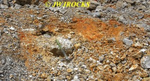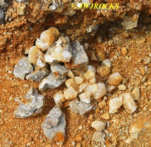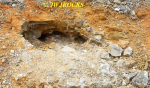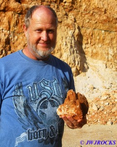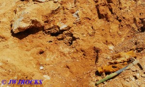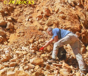 A few minutes later, a white car entered the quarry and drove over to my truck and parked, and a guy got out and said he hoped I would be there when he arrived…came over and introduced himself as Kurt and told me that he had been reading my blog site on rockhunting for the past year. Turns out he is a teacher in Lebanon, Missouri and new to rockhunting…he had dropped his wife off at a seminar in Rolla that morning and then decided to drive down and see if he could find anything, and was hoping to find me there as well. We talked for a few minutes and then I showed him what I was finding that morning and he decided to go further east along the wall and see what he could find. About thirty minutes later I looked up and he was over in the area of the original wall, which is still a very good producing area to work….