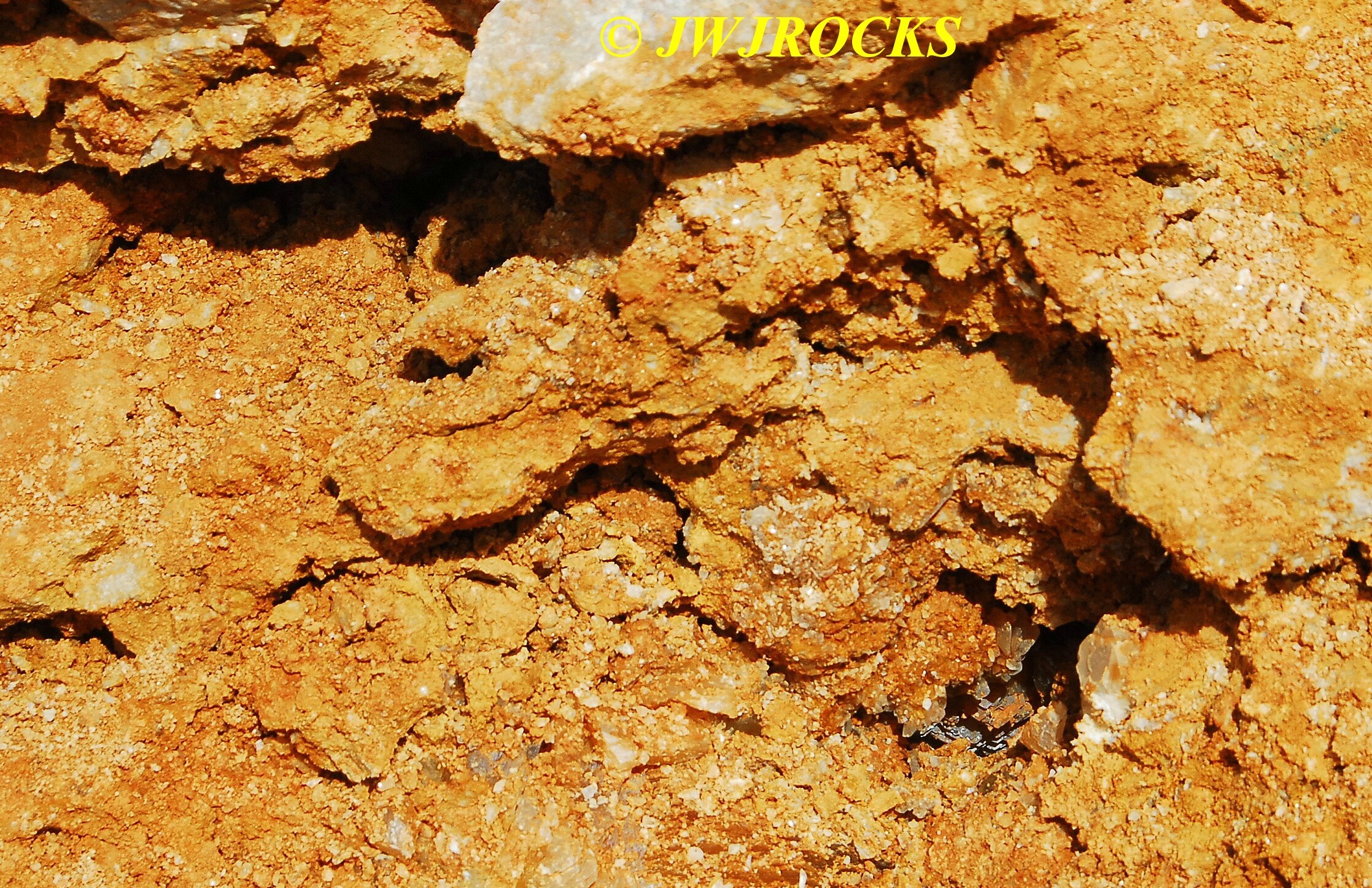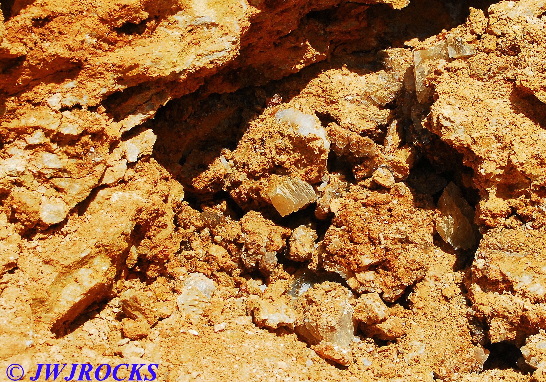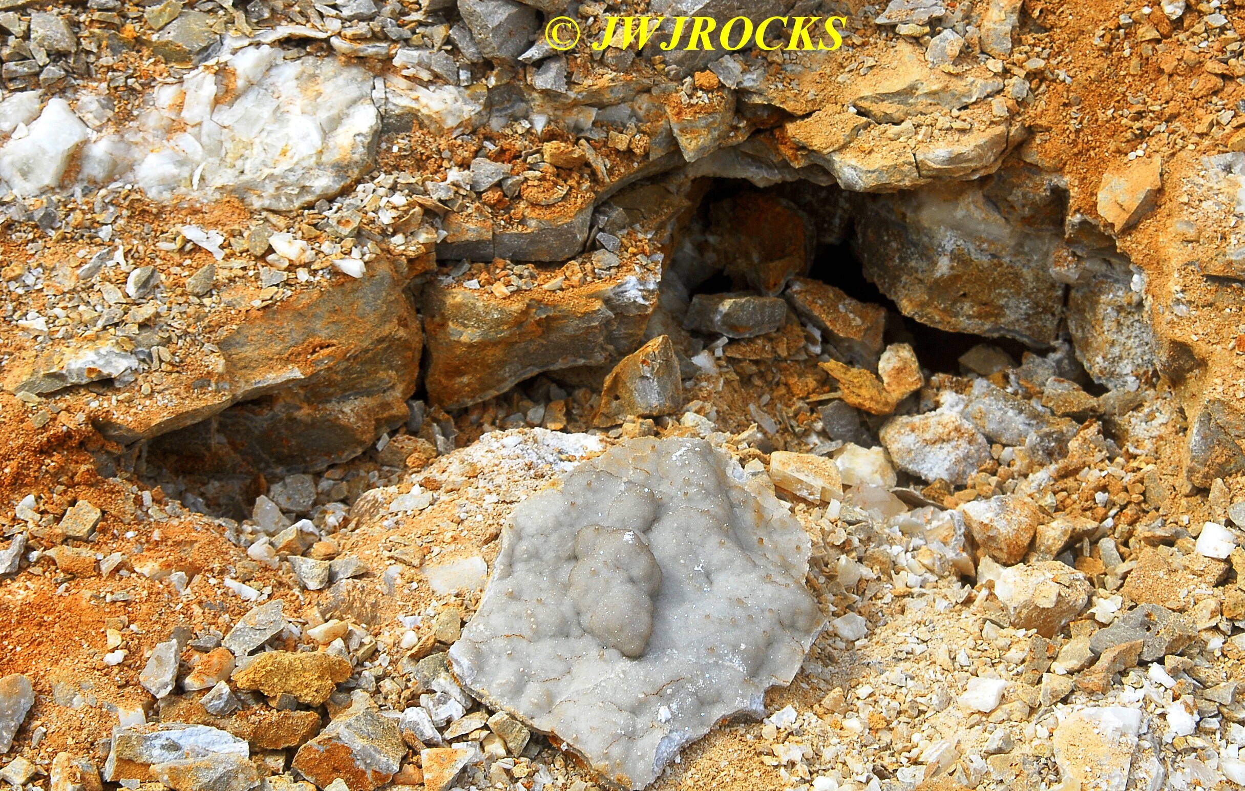 …it`s not in very good focus, but is very appealing looking and you can see some of the colors I was enjoying as well. I actually found it by doing some raking around a few likely looking bumps at the base of the wall and soon spotted some calcite indicators at the bottom of a ledge, as well as water filling the hole I was digging, which I really didnt like, but sometimes you have to take the bad with the good…..