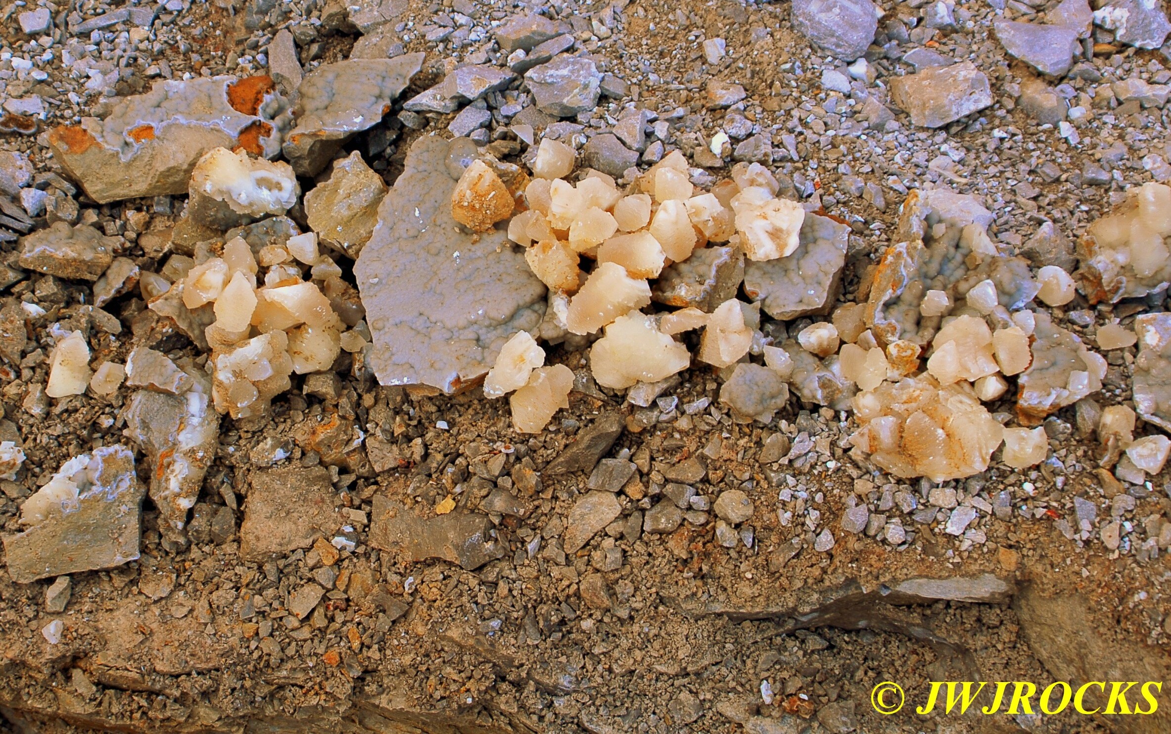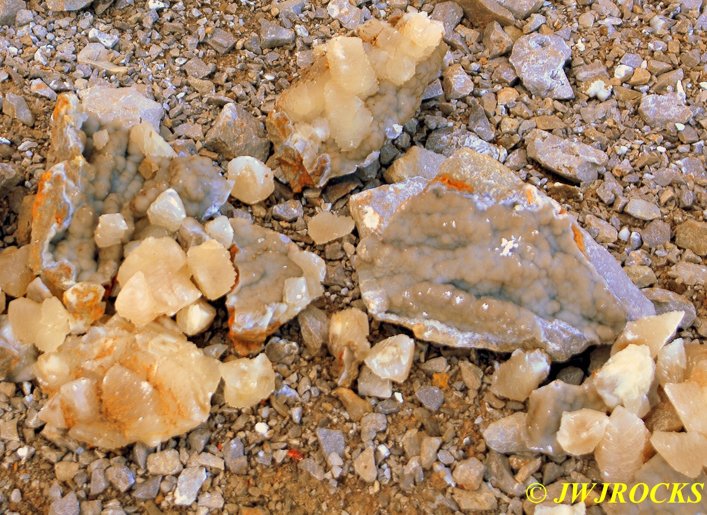 …some of the first few pieces I pulled from this pocket, were these nice chunks of calcite druse…