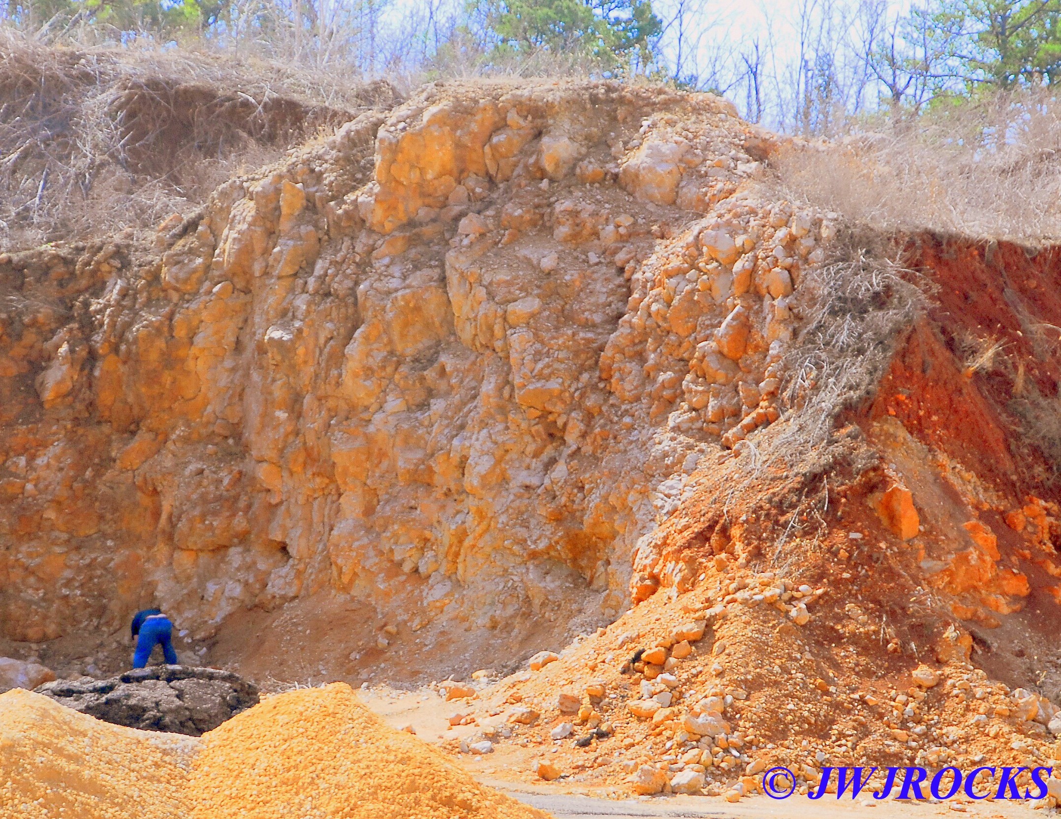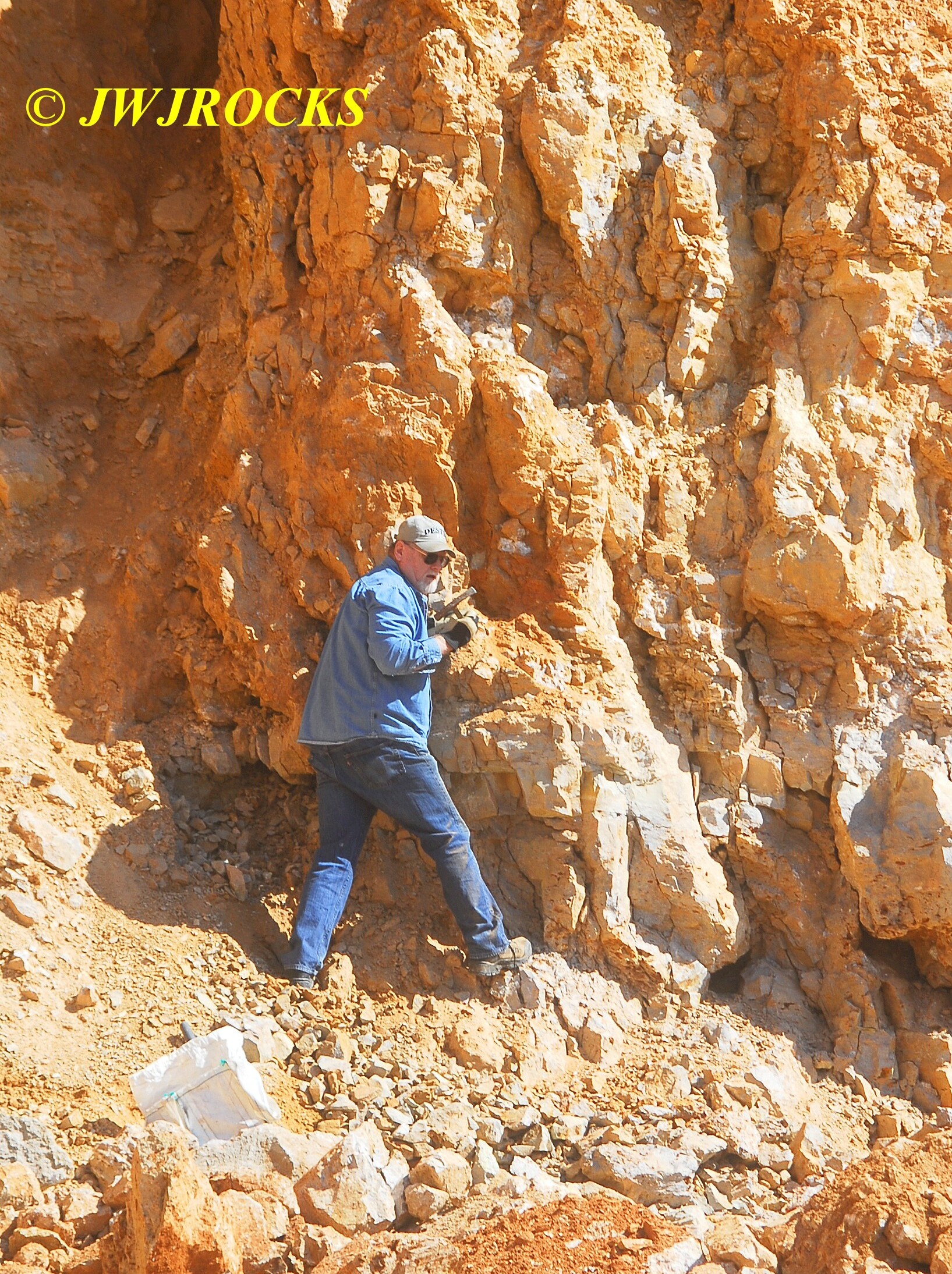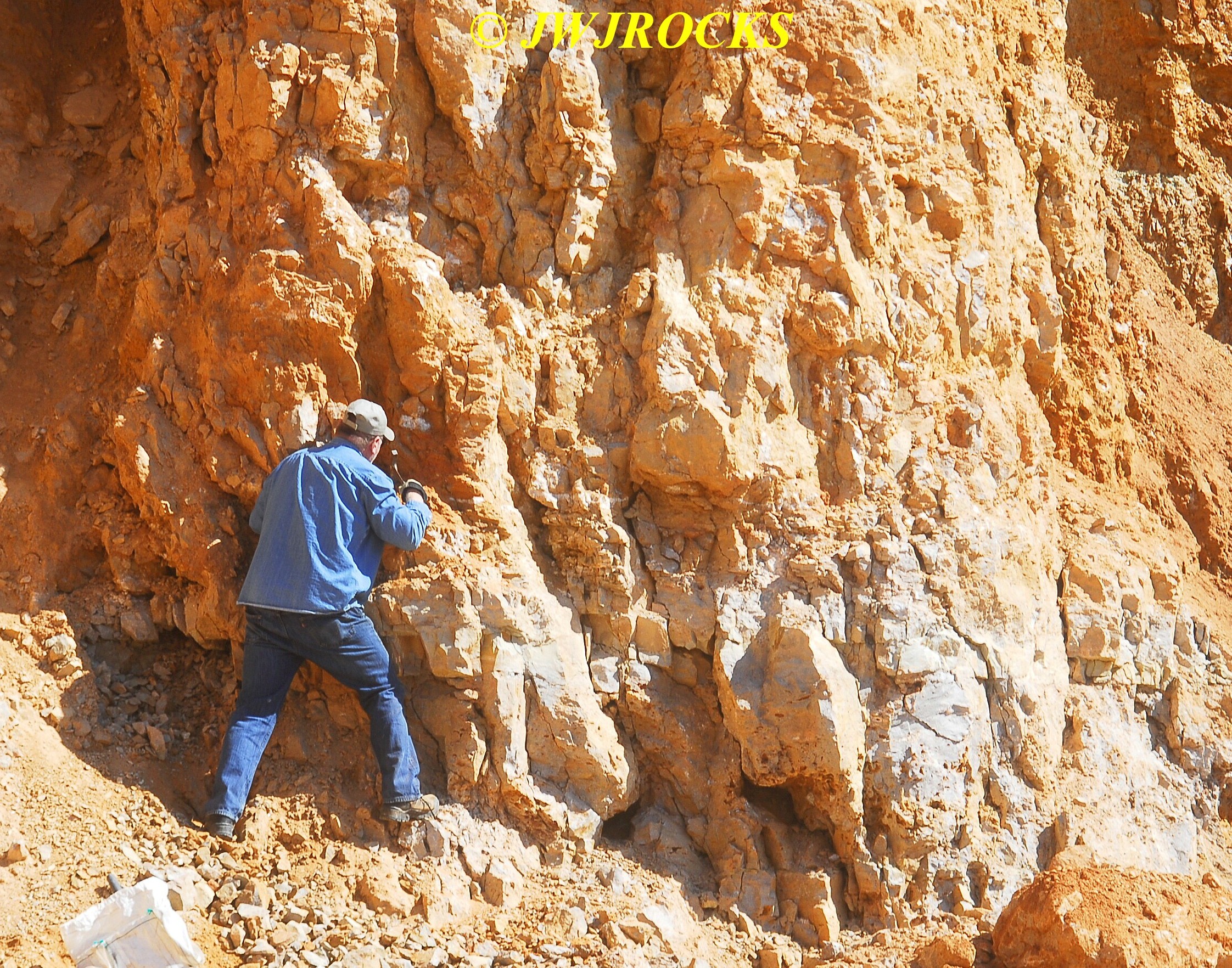 ….I was working the smaller pockets when my buddy Jim showed up and stopped by to visit briefly, taking a break from working on his house. I had worked my way down from where I parked the truck and found several smaller pockets…could see the wall was fractured in several areas, although some of them were way up high too….