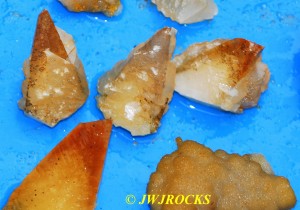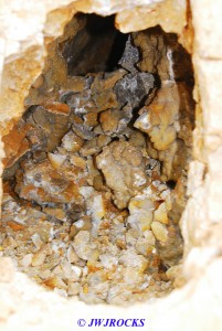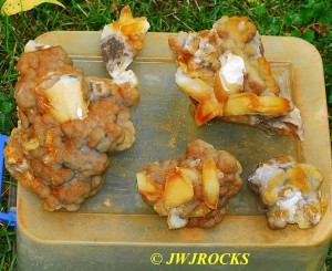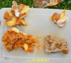 …and after pulling those three out, the pocket basically just closed off to me…so I began looking to the right and above and below…and finally to the left side a few feet, I struck paydirt once again…pulling some brown dogtooth poker chips out of some loose sandy matrix….