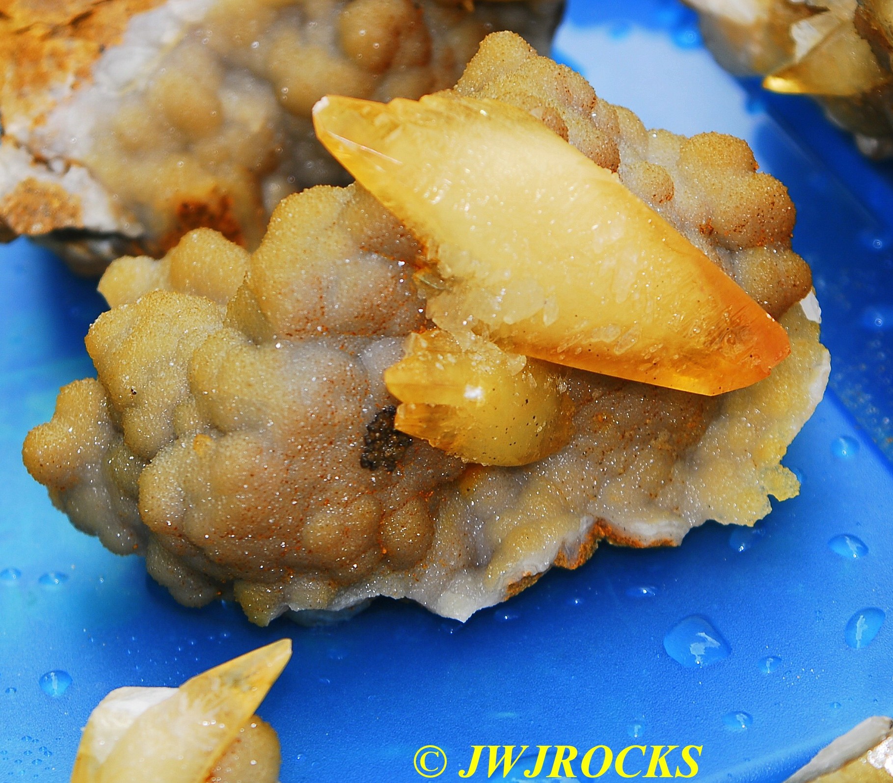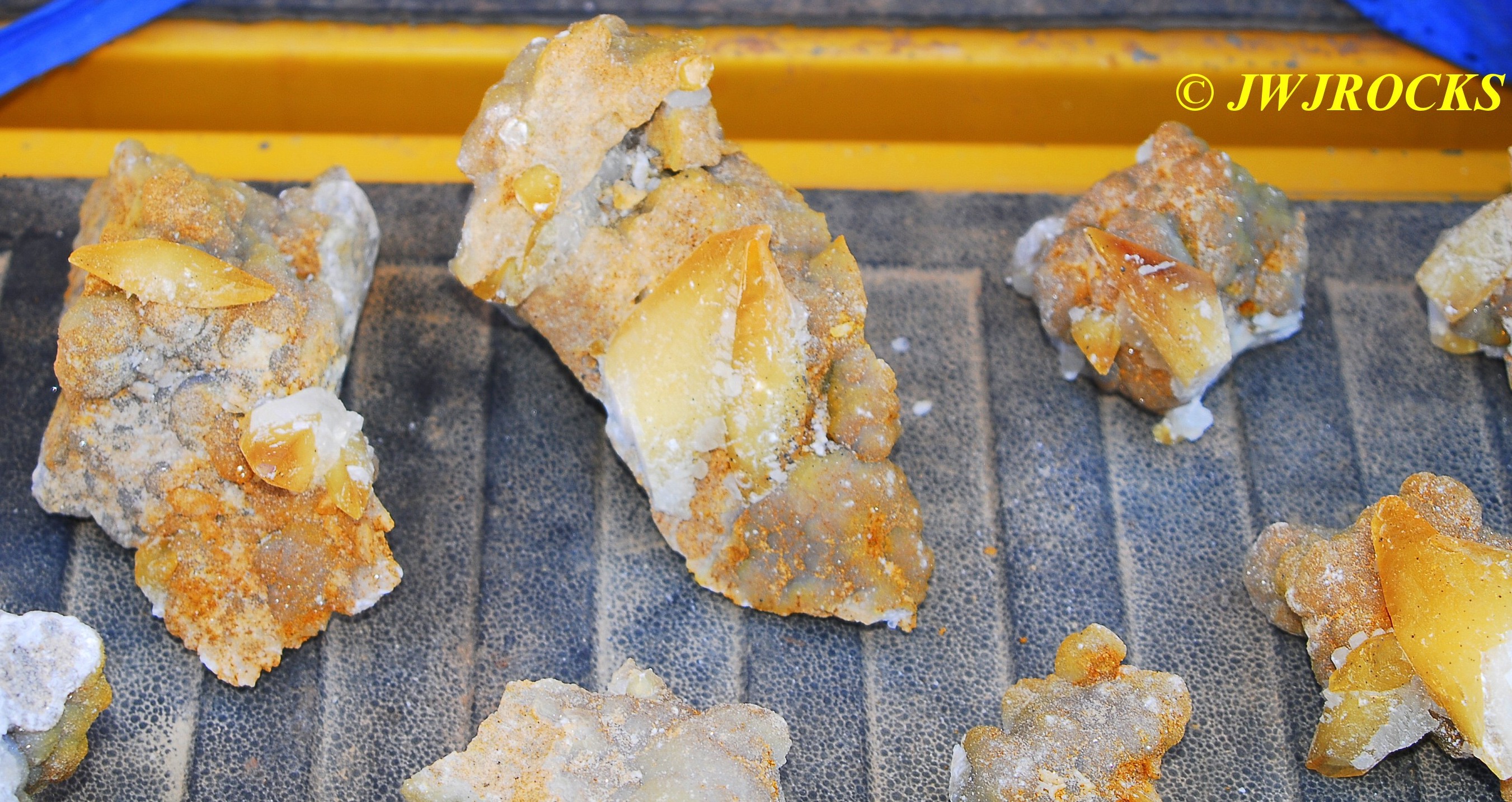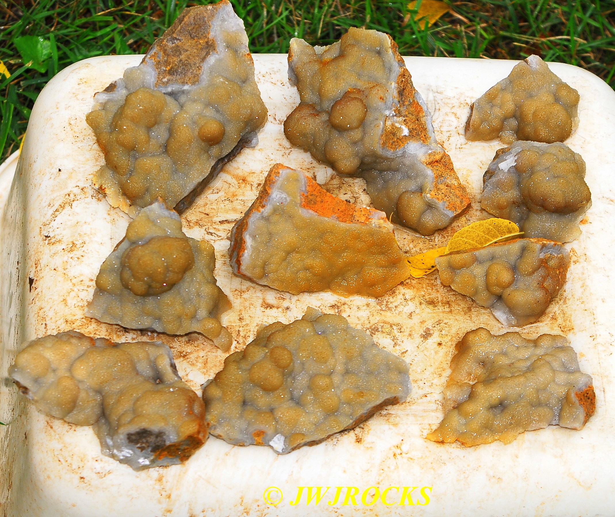 and within an hour, I had found a small pocket of poker chips and druse combos…the top three in this photo are the first ones I dug out of the initial pocket in the wall….