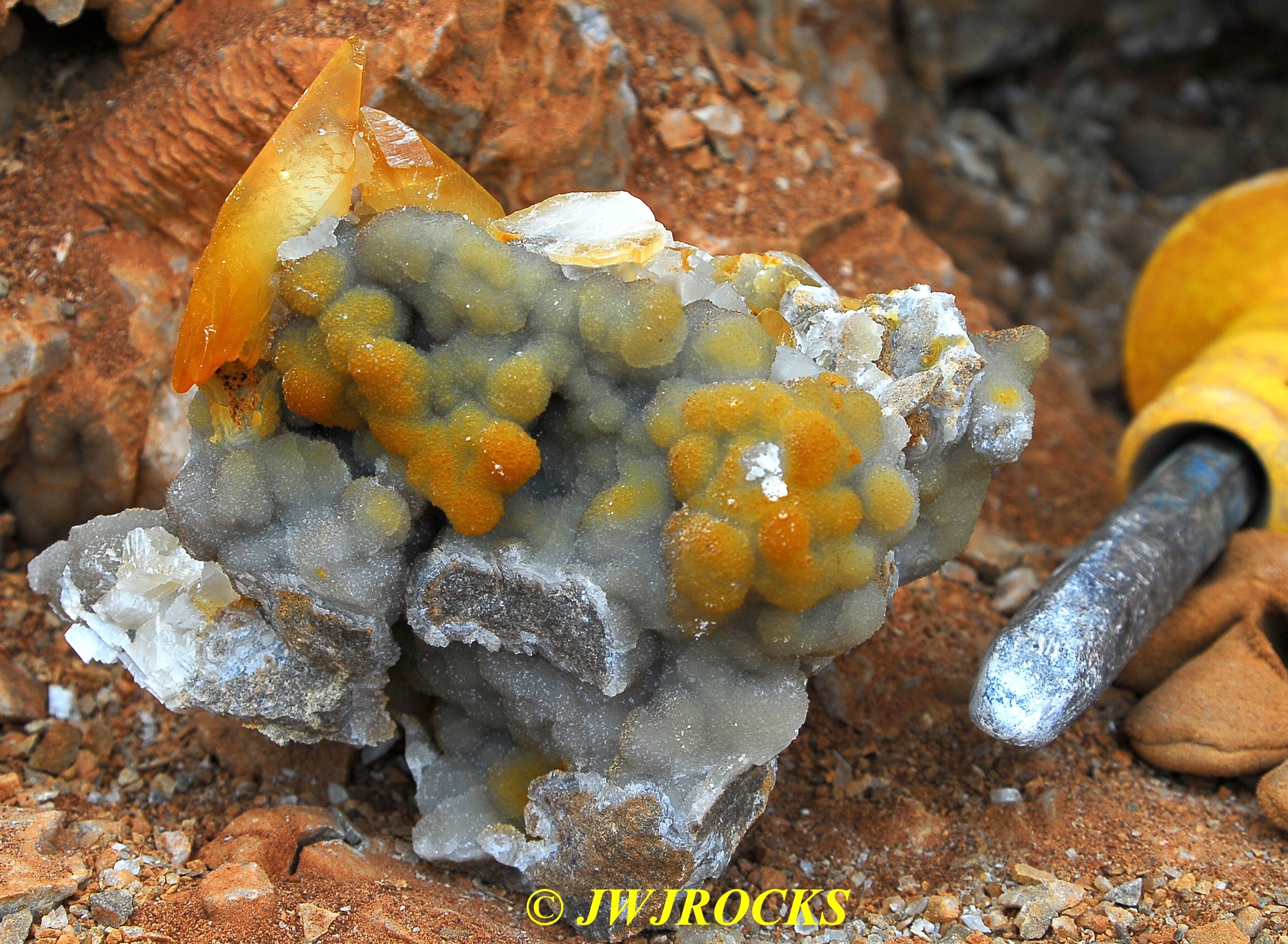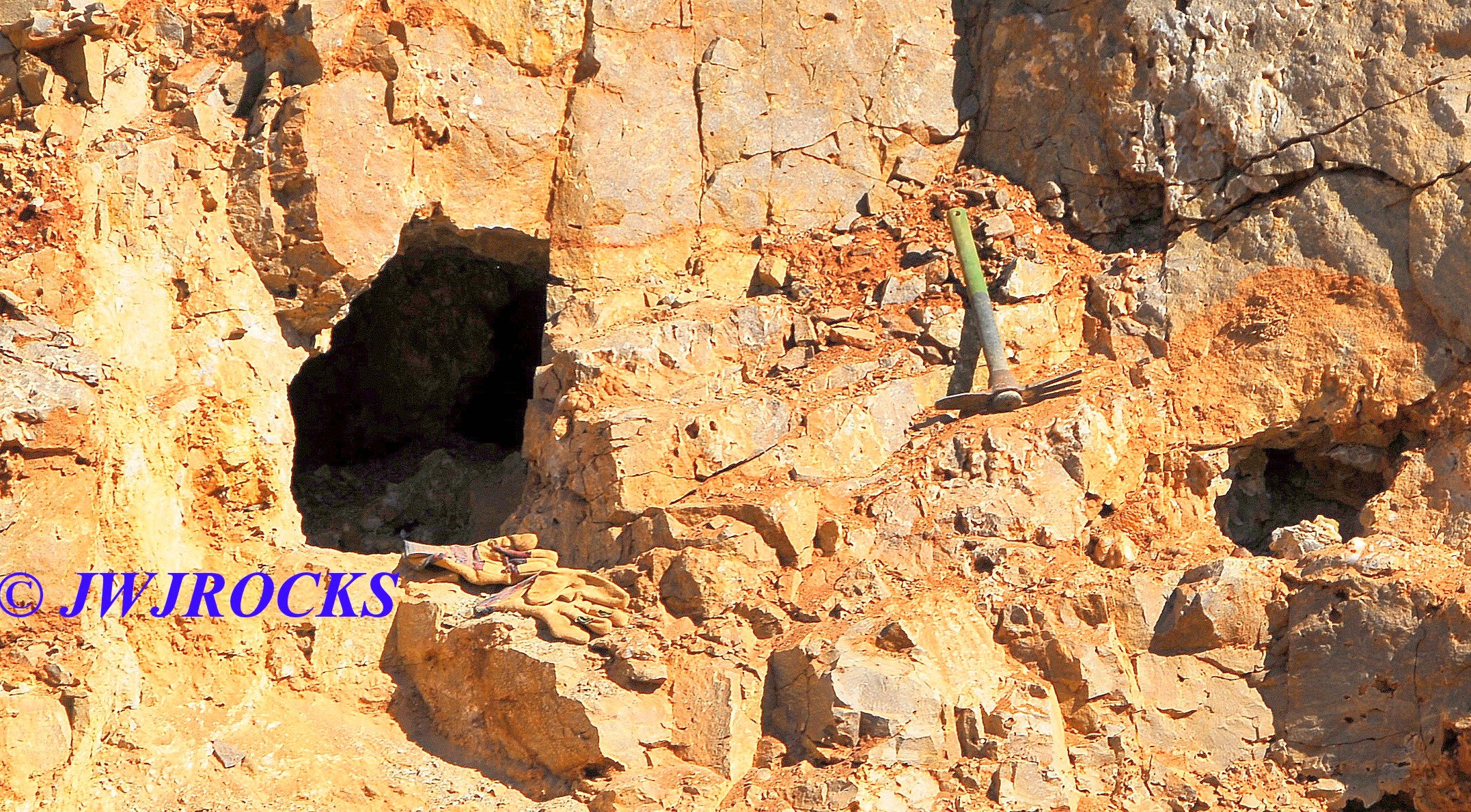 …and the first thought was HOLIE COW…another big pocket….and immediately thought back to the time my good buddy Ian Merkel was here visiting…I had found a pocket that day at the secret spot quarry, similar to this one, except that in that one, there was a huge pocket inside and above my head and everytime you jostled a rock inside, crystals would come falling down like a big slot machine…and after I had cleaned it out as much as I wanted, I turned it over to Ian…later looking back to find him with his head and shoulders in the pocket, digging it out even more…however, this pocket contained alot more than that one had and in even bigger form….little did I know at that point what lay ahead….I started reaching in and pulling out several singles right off the bat…