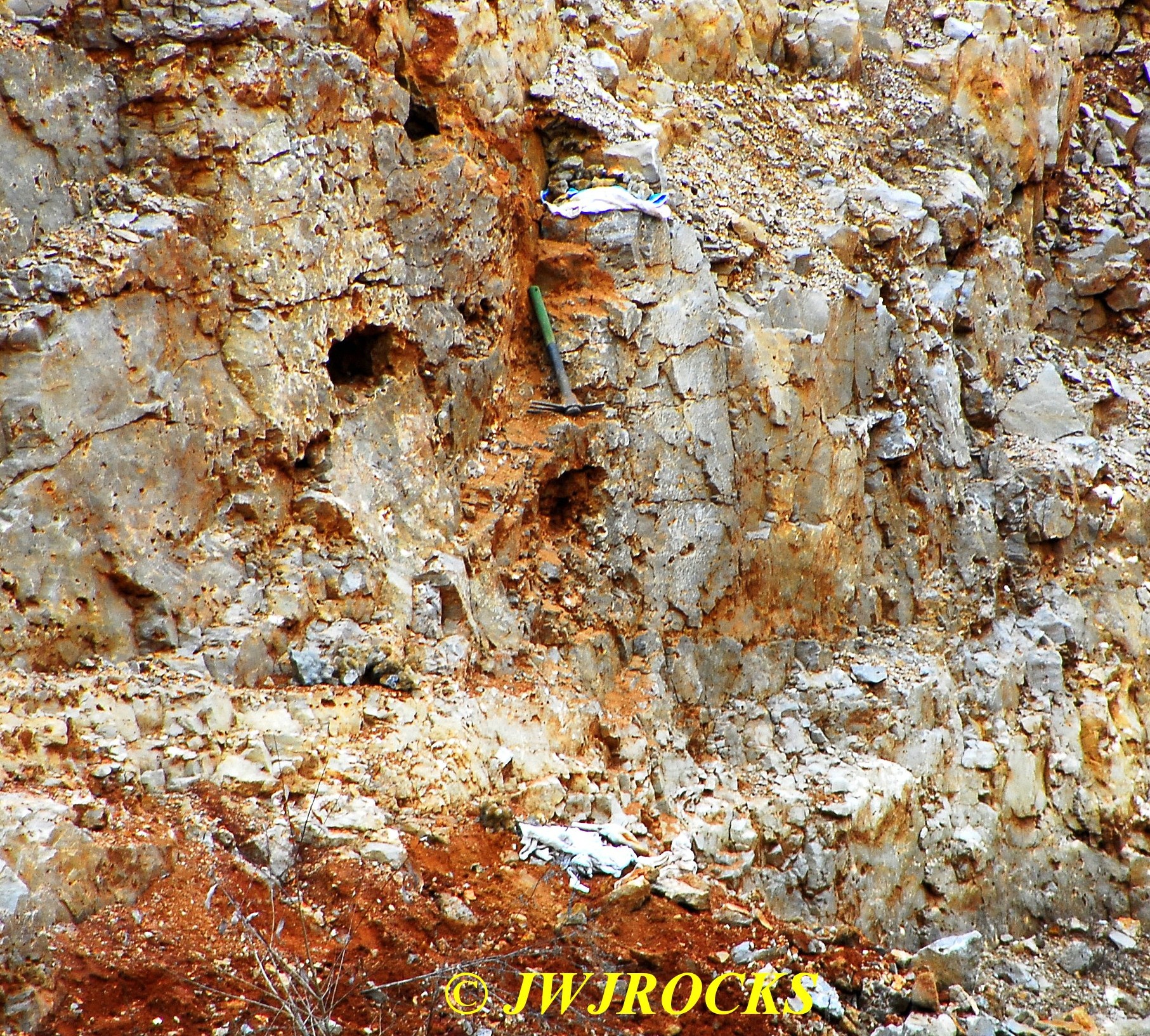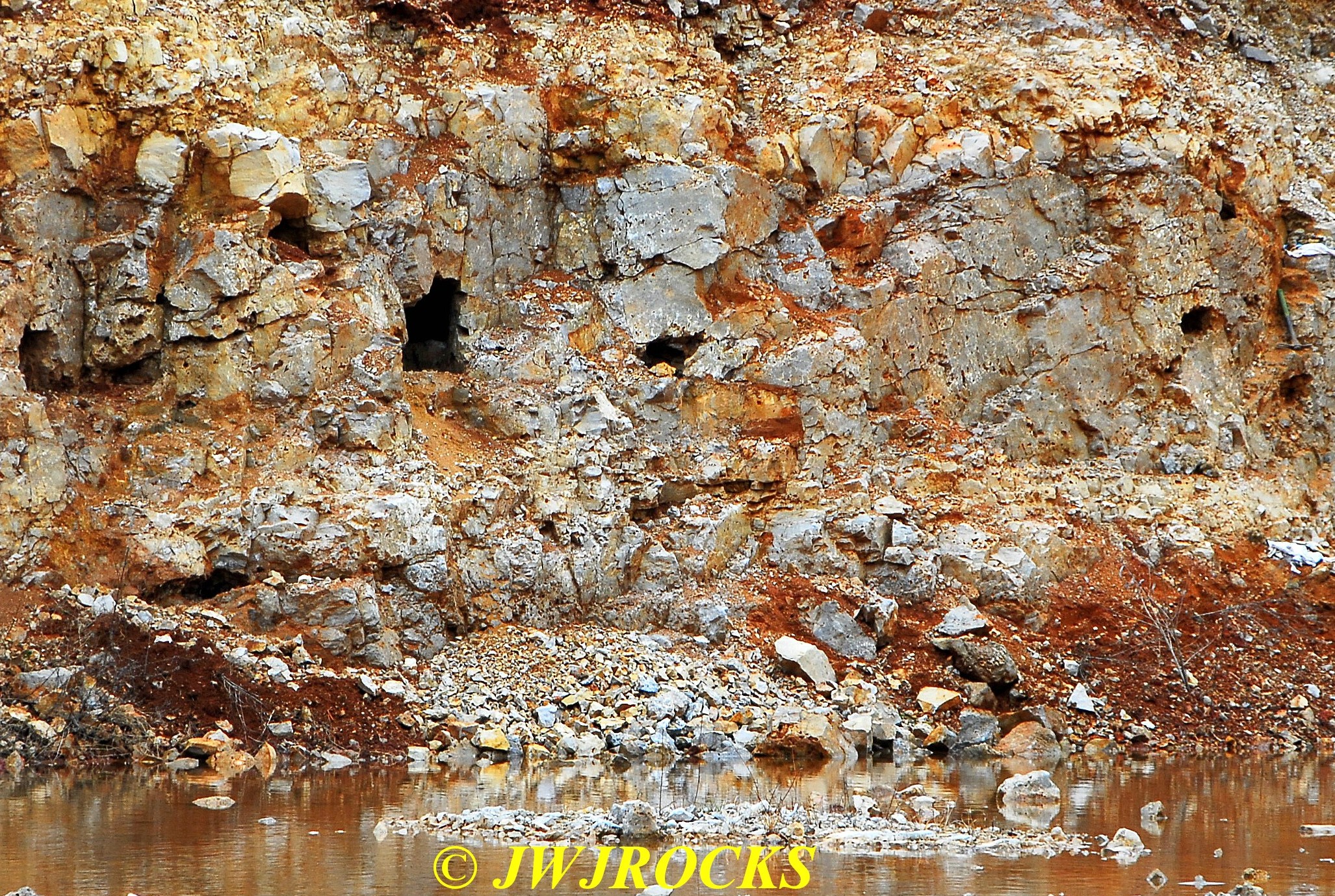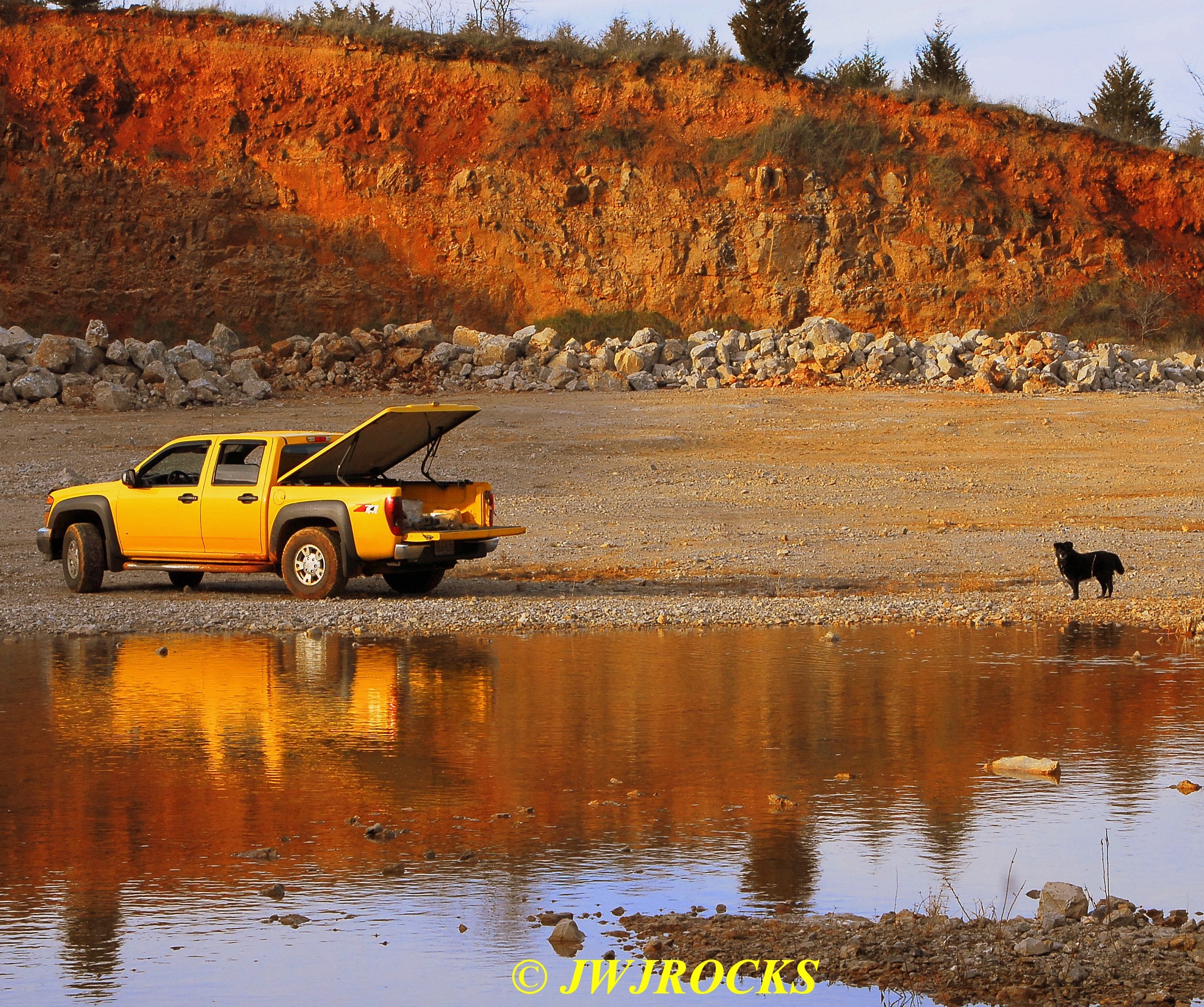 I decided I should return to the secret spot since I hadn`t been there for several weeks, last time being when I found the big and deep dogtooth pocket. Missy and I didn`t get up til mid morning and by the time we got started in that direction, it was late morning…it slipped my mind that it now gets dark sooner, so by the time we arrived, I had about four hours of light left..in my favor, it was cloudy so I knew that the evening light would linger longer, kind of like that one night there when I found that small cavern full of dogtooth crystals and needed as much time as I could get to clean it out…another prayer answered that evening. We arrived to find to our dismay, a large pool of water on two sides of the secret spot…the last time we were there, it was dry all the way across in there, and while it was due to be much warmer than it had been lately, I had been dealing with a lot of congestion and didn`t feel like taking a chance on making it worse. I changed into my boots, grabbed my mini mattox and walked down to the end of the pool of water and crossed over by climbing up the hill and then sliding down to the other side…walking along the wall looking for potential pockets. After about an hour, I got down to the spot where I located a large and deep pocket chock full of beautiful dogtooth crystals and clusters in September, many attached to bubbly druse pieces….
