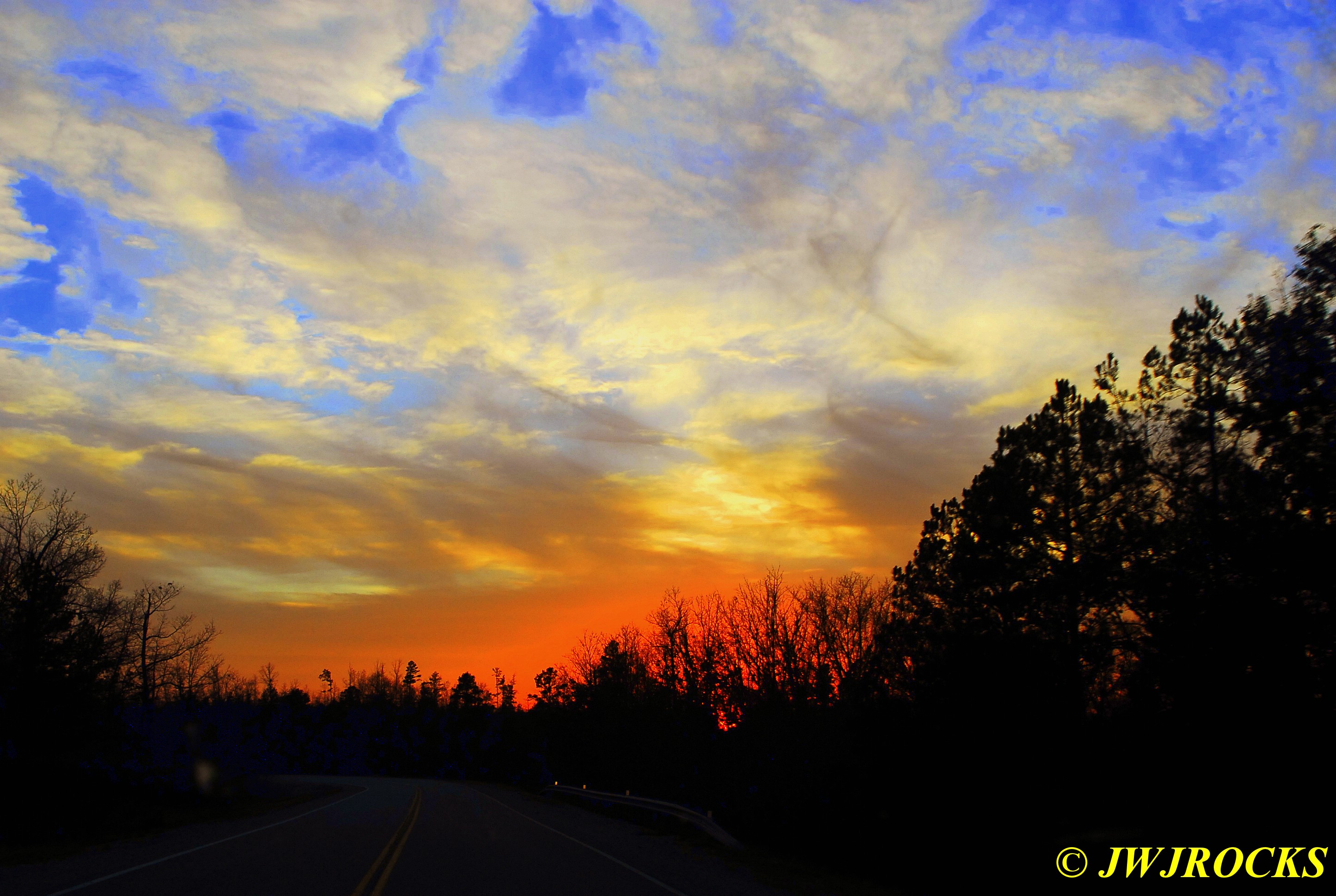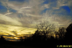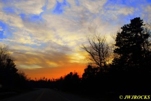 …it had a lot of base dolomite rock on it…am guessing it weighed in about 100 lbs at least. I filled two more bags and wrapped up several roof plates that were smaller than this one, thankfully, and took to the truck, along with my tools and the ladder. The sun was beginning to set as I left, and I decided to drive down and see a good friend who is a mineral dealer in Doe Run specimens, before heading home. Here is how the sunset looked as I left….