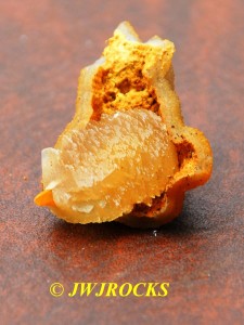…cause when you turn it over, there is a dogtooth inside a poker chip calcite formation, inside the shell of the small druse piece…..never seen one like that….