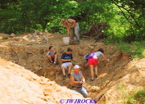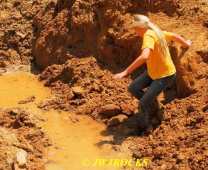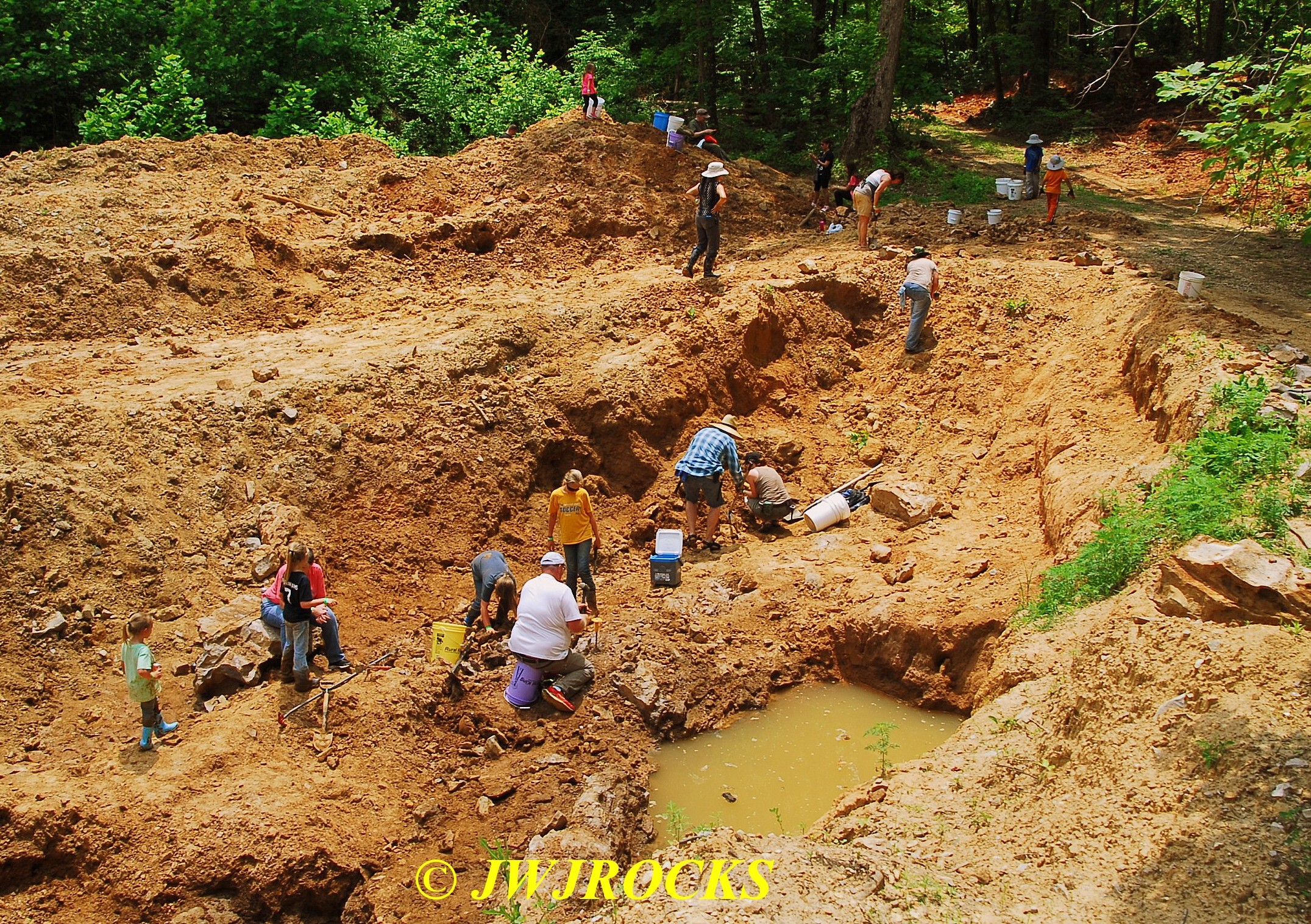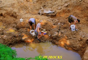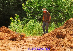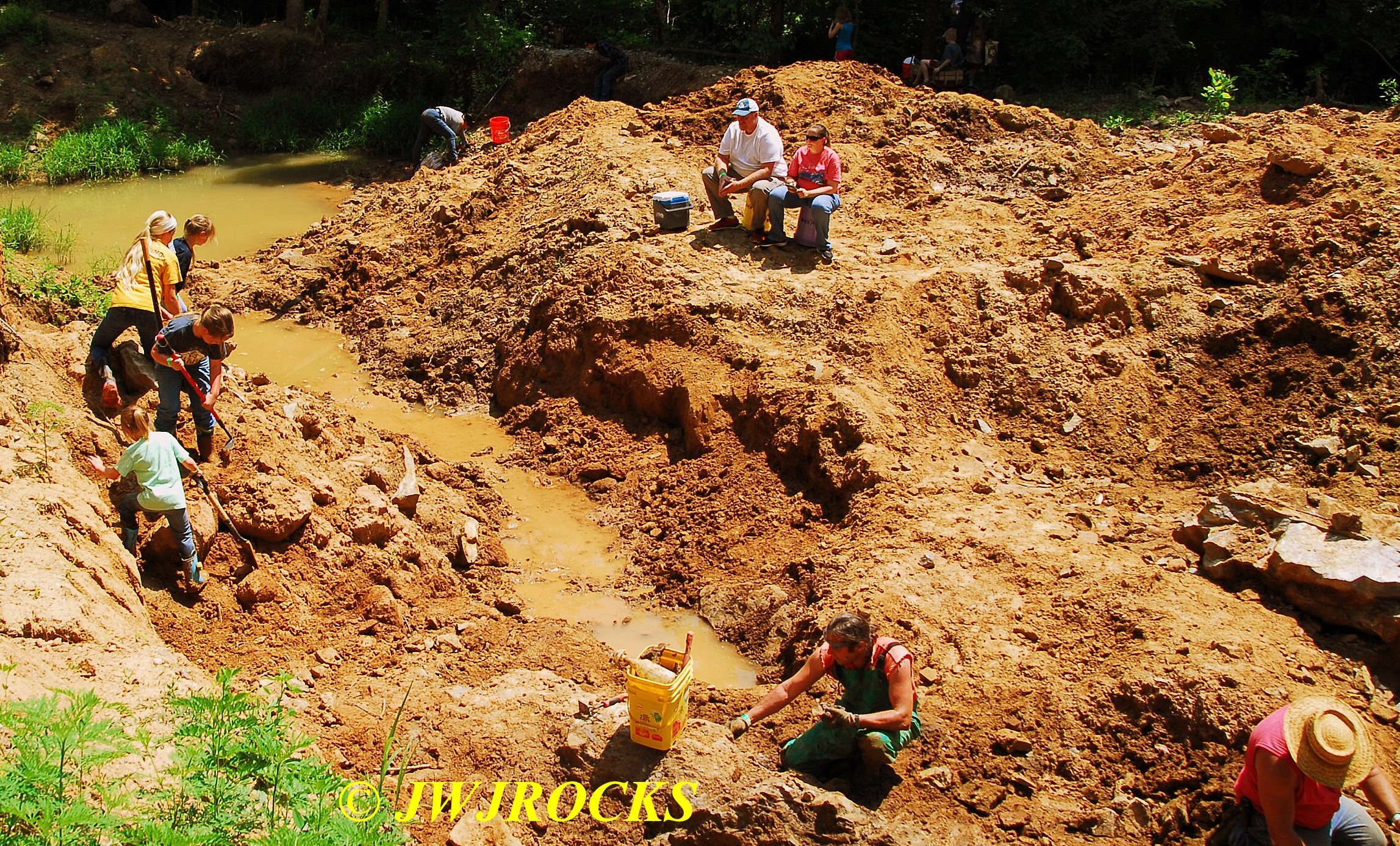 …and about 2 pm, a young couple walked up to me as I was standing on the road over the pit, watching the diggers below and handing out advice when requested…and introduced themselves as Cody and Misty…I had talked to them the week before on the McRocks board website…they are a husband-wife team of geologists who moved to the Jonesboro, Arkansas area to teach geology at the local state college there, and came over to have some fun and find some cubes of fluorite as well. After pointing out the lay of the land there, they chose to get down into the pit and dig in themselves and see what they could find…