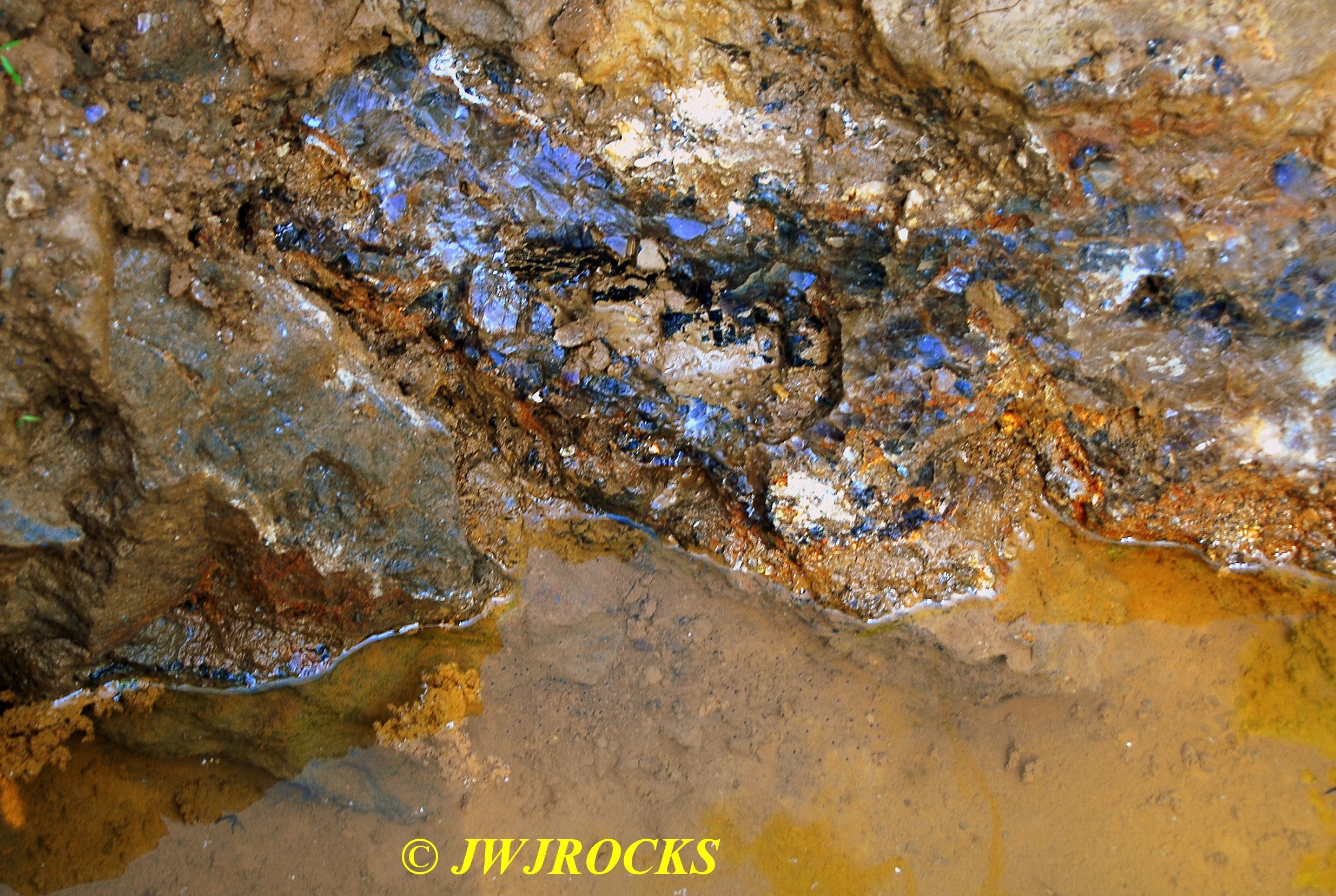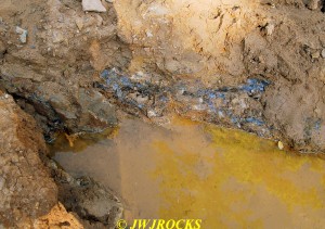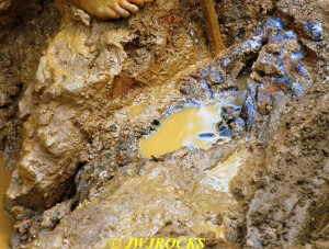 …and here are areas in the bench of the new pit where fluorite can be seen…one of the many promising areas to start searching at for cubes….