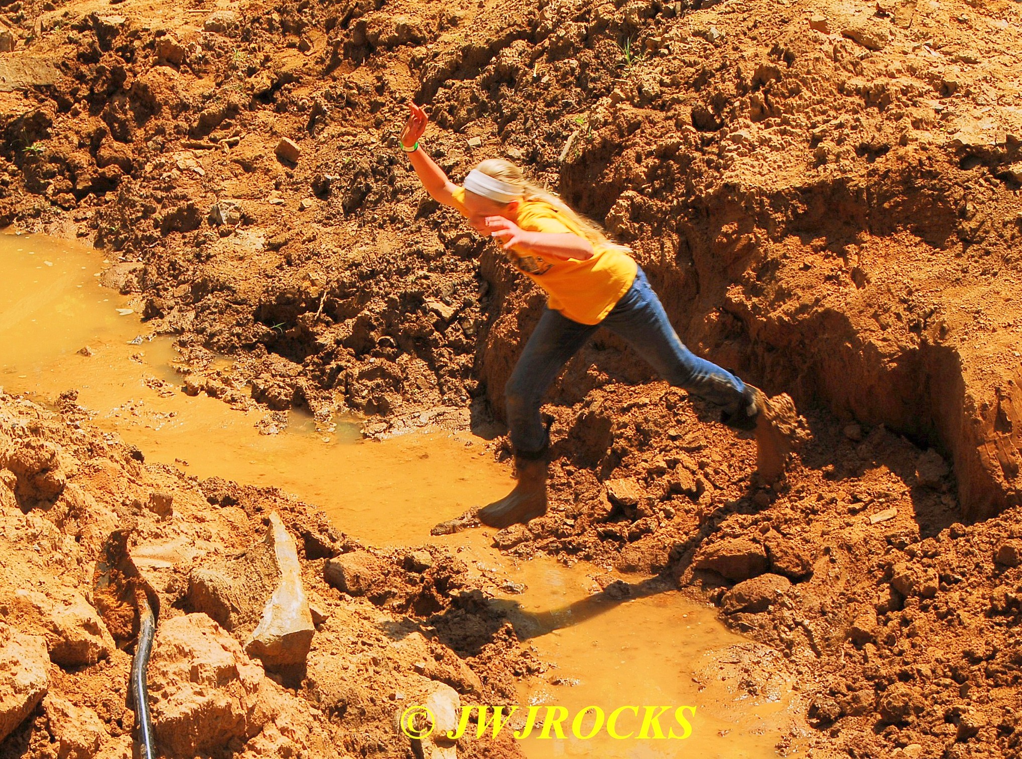 …and after getting stuck and extricating herself from the soupy mud there, not an easy feat especially after you have been digging there awhile…she decided to do the long jump across it…