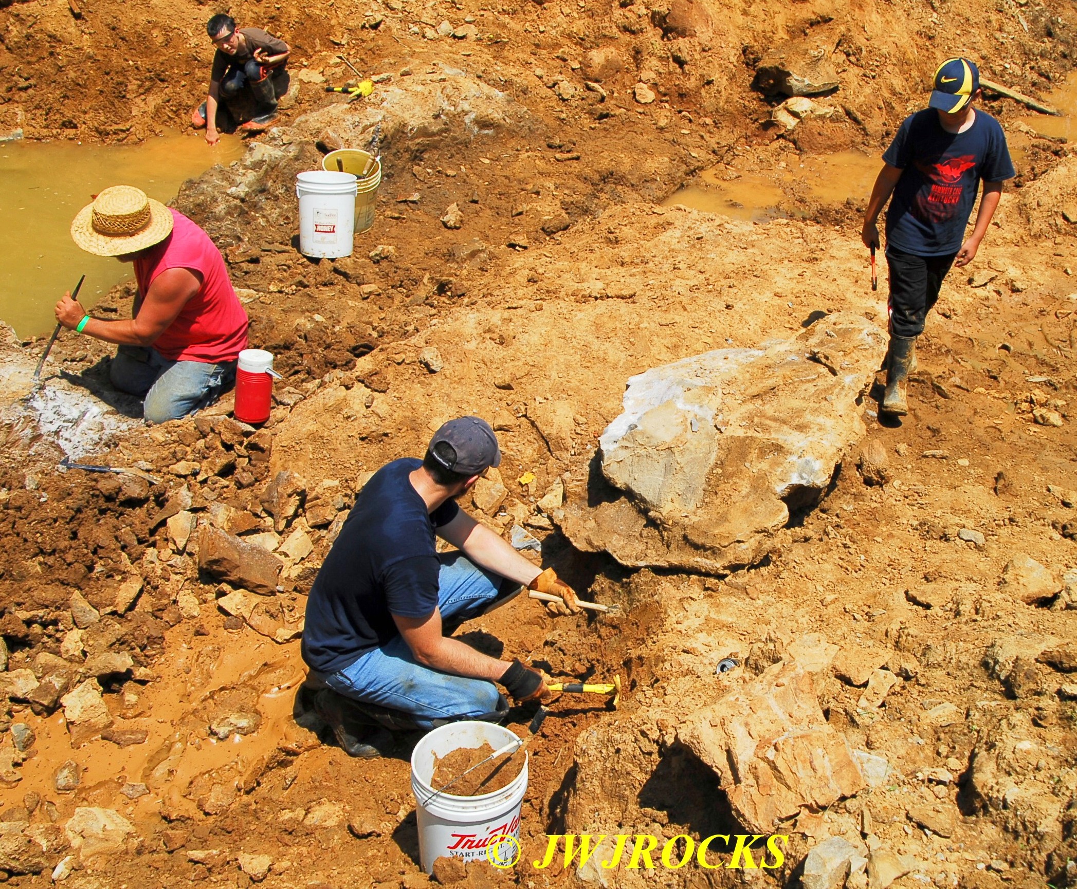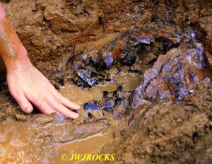 ..and while down there in the mud and water, he decided to take my advice and feel around below the bench for more vugs and pockets…..