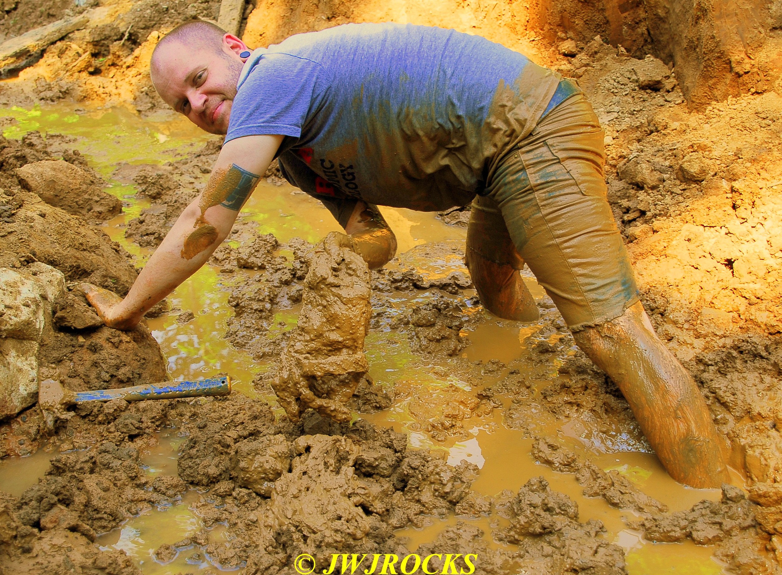 …and this is an old shallow shaft that we uncovered during our machine dig, now filled with mud and was a few feet deep, providing some a nice cool respite from the heat that weekend….