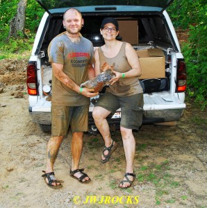 …and get cleaned up to head to the hotel and supper at the Oasis Southwest Grill and Steakhouse….here is Cody and Misty showing off one of their finds at the base of the pit wall earlier in the afternoon, shortly after they arrived and dug in….