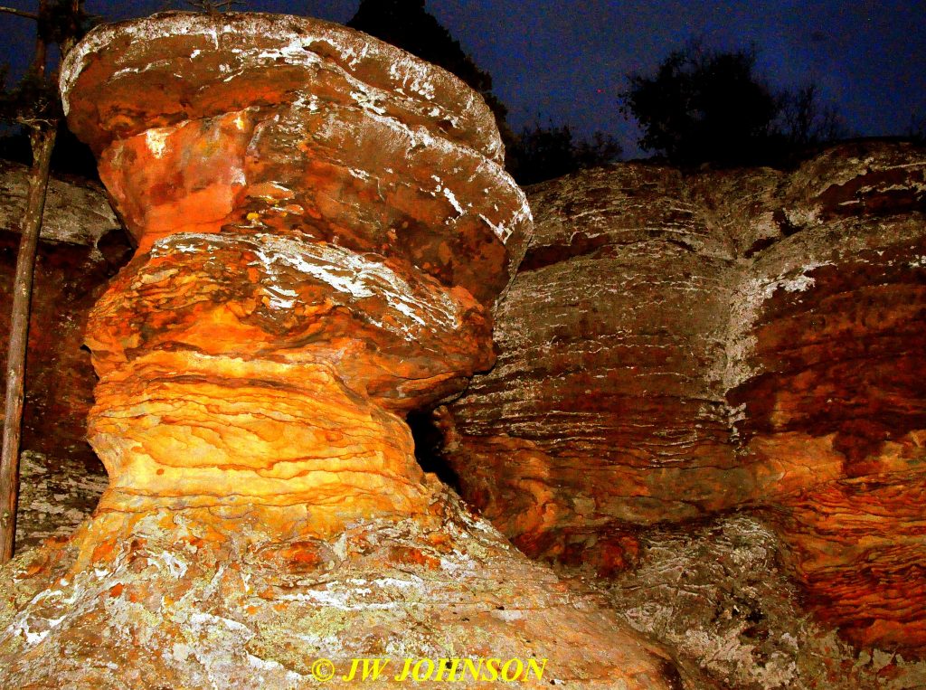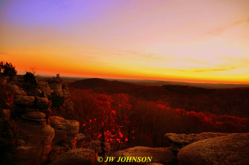 The landowner stopped by to check on us a few times and see how we were doing, we showed him our finds and he was happy as well. We loaded up the tractor and tools, to head back to the cabins to get cleaned up before heading to Golconda for supper. Virgil headed back home before that, antsy to see his new grandson and wanting to stop off at a quarry on the way. Since John had never seen Garden of the Gods, I drove him up there to see it at sunset and snapped a few photos of it again as well…