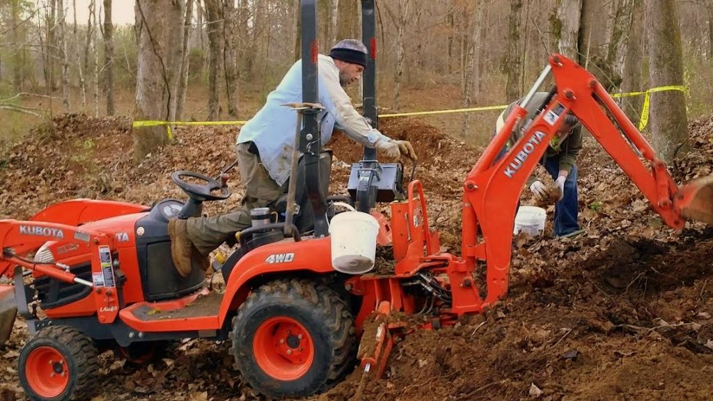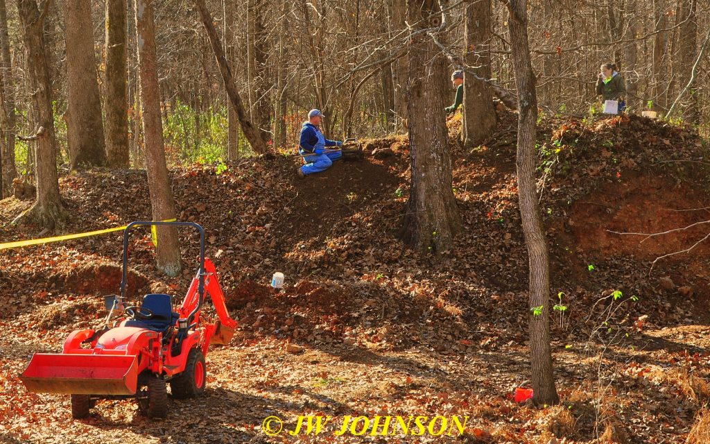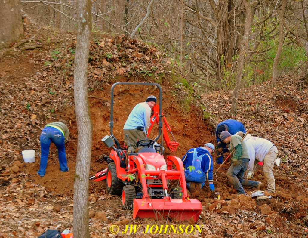 David unloaded his tractor and started digging around in various spots up and down the hill around the main tailing pile….