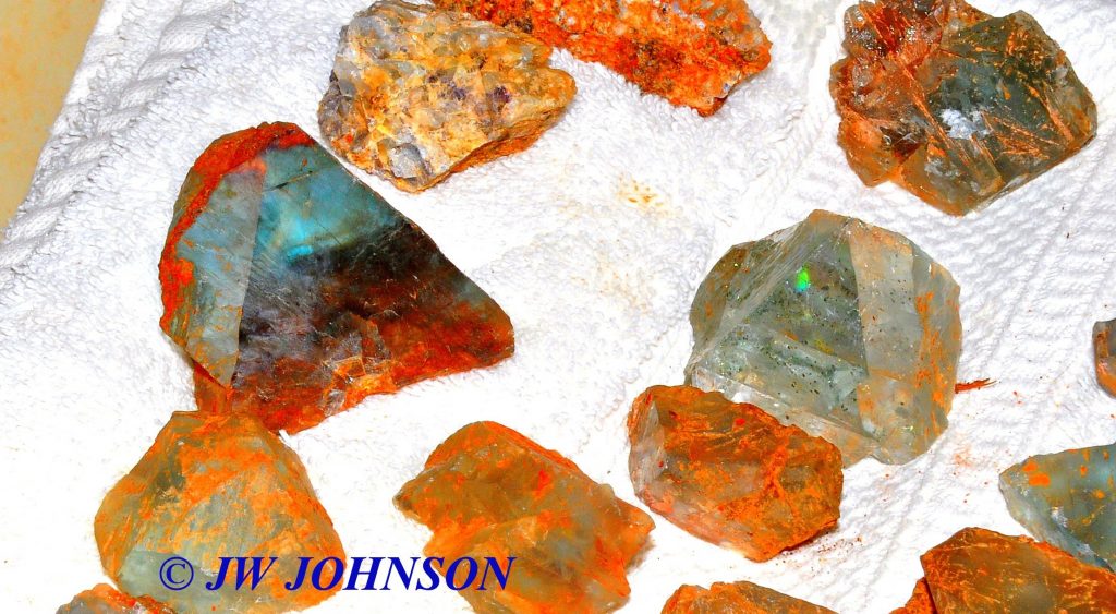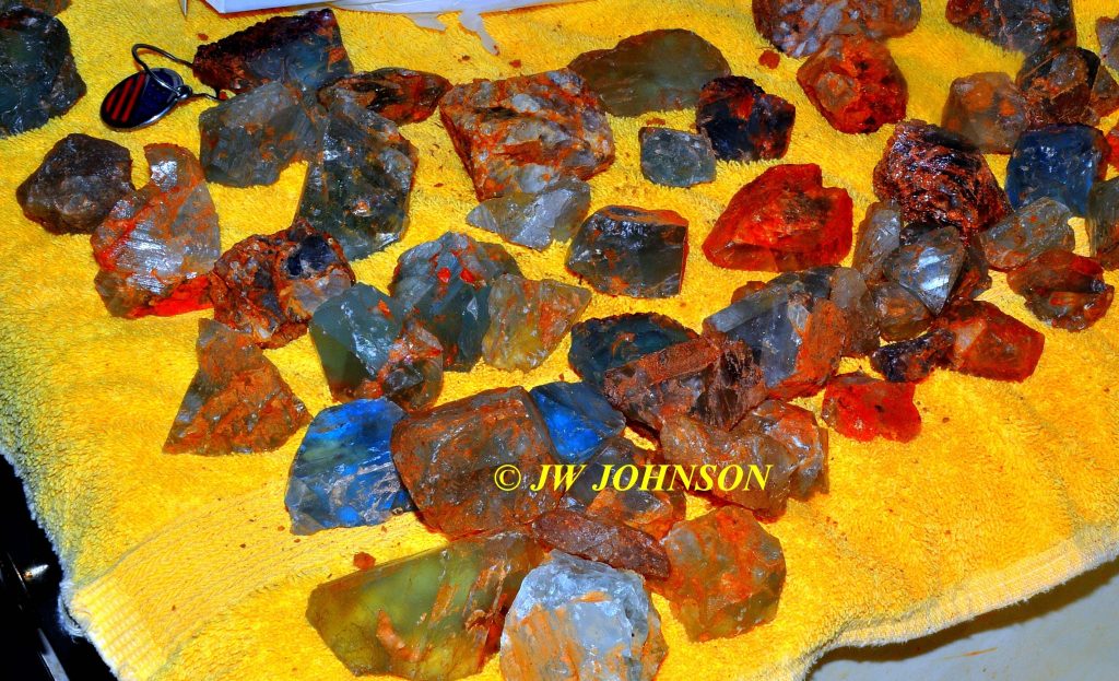 …and by noon, after a break for food and water, we all wound up down at the northern base of the tailing pile looking for goodies, which seemed to be naturally just falling out of the dirt and into our hands each time David made a pass with the bucket into the pile…David spotted me taking photos and said I had better get down there cause everyone was finding some nice stuff….