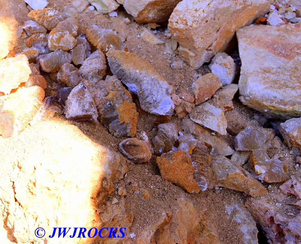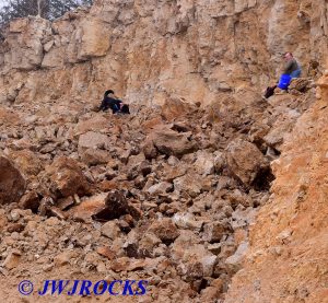 It`s been a great winter so far, only about six weeks of normal cold weather and two weeks of very cold weather, and then in February, we started warming up like it does in May…we still have March to go thru, it may come in like a lamb as it did this morning and go out like a lion, but who knows…I just know that everyone really likes the weather we have now, we hit 76 degrees yesterday alone !! Last weekend, Nathaniel Reid and Chuck Reed joined me on a trip to MFQ to check out the quarry on another warm day, we had not been there since November last year, mainly because there had not been any activity down there. I received word from my good friend Jim a few days before the weekend that they had blasted the northwest corner of the quarry. In the past year since they began removing rock from the west side of the quarry, we never found anything more than the poker chip wanna bees on that side, but we had not been there in a while so we decided to go down and look things over…glad now that we did.