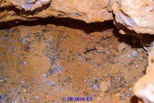 …here is the pocket when I got about halfway down into it, after removing at least one bag of wrapped crystals and clusters….
