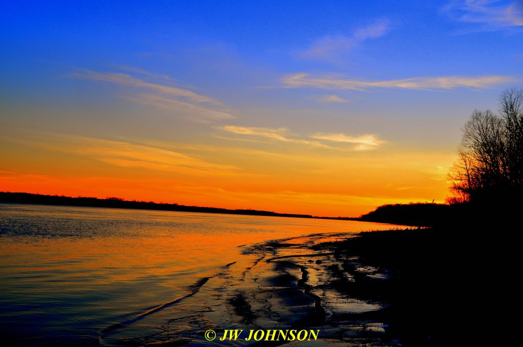 ….and as we approached the ferry crossing at Cave-In-Rock, I noticed the setting sun on the Ohio River, turning the water to a shimmering bright yellow color….so I set the parking brake, grabbed my camera and walked down to the waters edge to shoot some images…