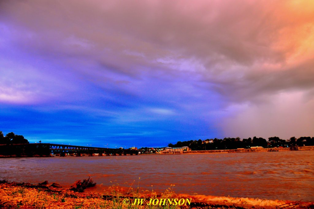 I drove down to the river access on the Illinois side just north of the highway and photographed the storm`s approach, there were a few others doing the same thing, probably due to the dramatic approach of the storm toward the Mississippi River and the color and lightning in the skies. With the highway bridge on the left side and the lock / dam directly across the river, the city of Keokuk still lit up, it made for a great show for sure…