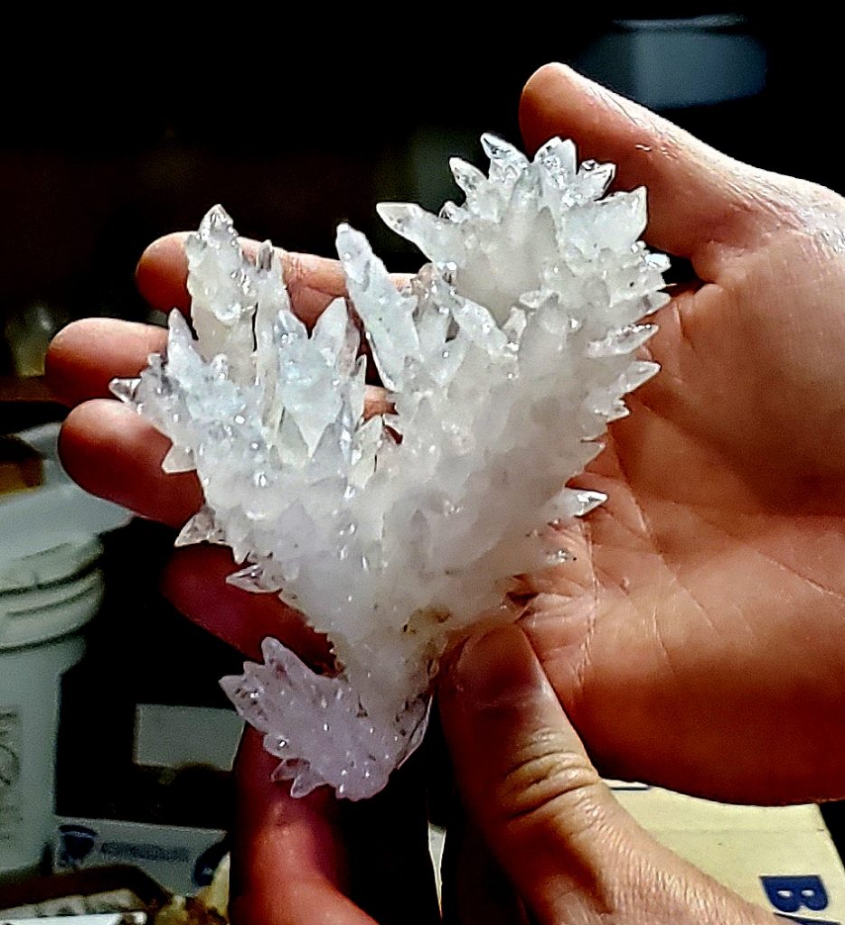 My apologies for the delay on this trip story…I usually have the story in here within two weeks of my return from Arkansas, but in December, I began helping the landowner of Haunted Ridge Druse Farm near Potosi, kickstart the opening of his farm to rockhounds from all over the state of Missouri at first, Mineral Clubs and then after the first of the new years, we made the farm available to rockhounds across the country…the initial hangup being the liability waiver…at first it was created for clubs only and he had his attorney draw one up for individual rockhounds instead. I am now working with a second landowner and getting him set up with groups and clubs as well at a more relaxed pace.