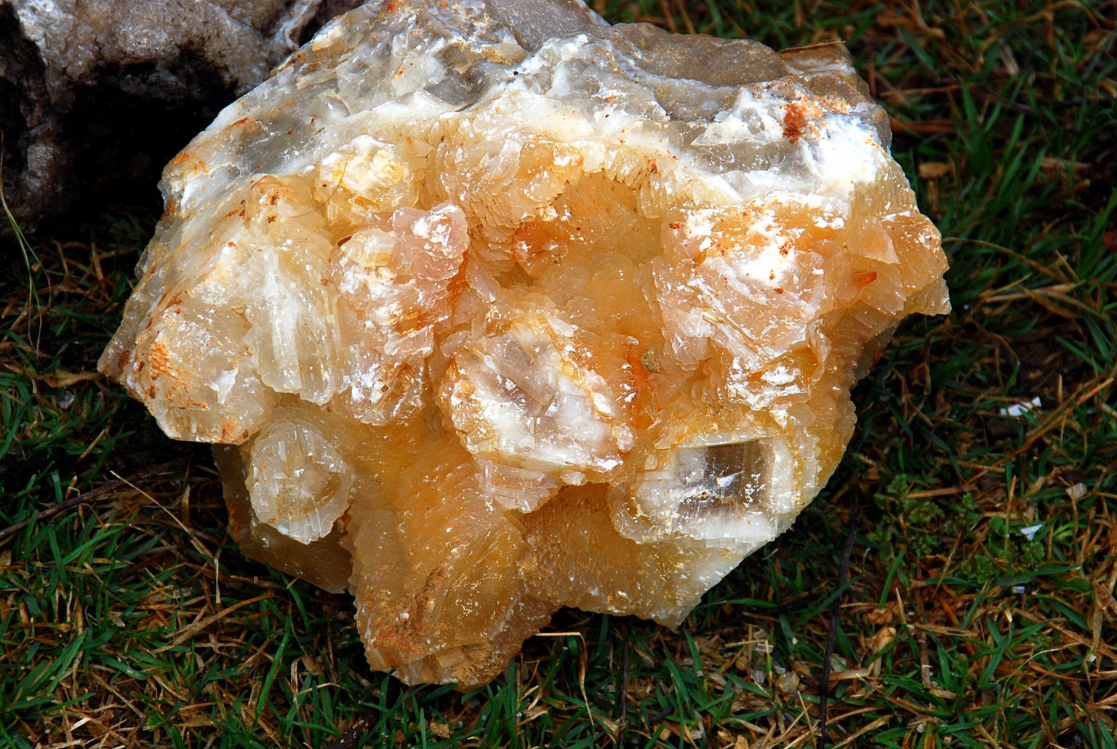 in this photo, everywhere you see white is the massive calcite seam and where the crystals appear to be hiding…so I began scraping back the shale looking rock and making a ledge to sit on more comfortably, deciding I might be there a little while longer, and as I am digging in more, I start seeing clusters of poker chips above the original pocket and to my right where I am opening up more pocket. I removed a few small boulders to gain more access and wha laa. in front of me are at least four clusters and even bigger single crystals just falling down with smaller crystals….now another thirty minutes has passed and I have filled two canvas bags, Lowes bags, which are fairly large canvas bags, and removed four big clusters basketball sized from the pocket….